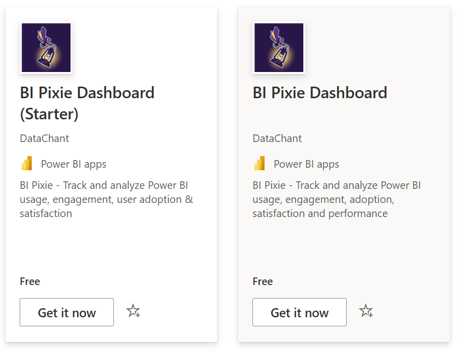 BI Pixie Dashboard is available on Microsoft AppSource as two different apps.
